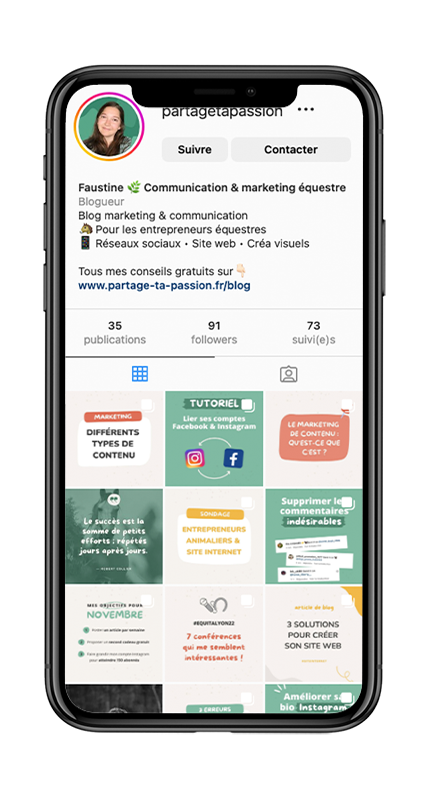 Partage Ta Passion est un blog de conseils en communication et marketing pour les entrepreneurs équestres. Depuis octobre 2022, des articles sont régulièrement postés sur le blog abordant la stratégie de communication, les réseaux sociaux, la création et gestion de site internet et l’entrepreneuriat d’une manière plus générale (organisation, équilibre pro-perso, etc.).